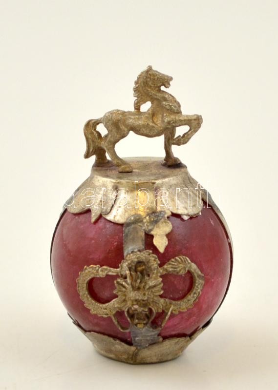 Beschreibung: Rodonit gömb, lovas fém foglalatban, m: 5,5 cm