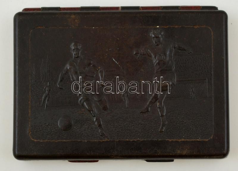 cca 1950-1960 Bakelit cigarettatárca, futball jelenettel, sérüléssel, ... https://www.darabanth.com/de/295-Fernauktion/295.0/Andere-Sammelgebiete/Flohmarkt~200012/cca-1950-1960-Bakelit-cigarettatarca-futball-jelenettel-serulessel-8x11x1-5-cm~II1569124