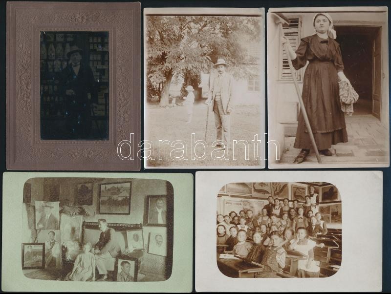 cca 1860-1910 Vegyes fotó tétel, 30 db (keményhátú fotók, fotók, fotólap, ferrotípia, közte egy levelezőlap) változó állapotban, 20x10 cm és 4x6 cm közötti méretben