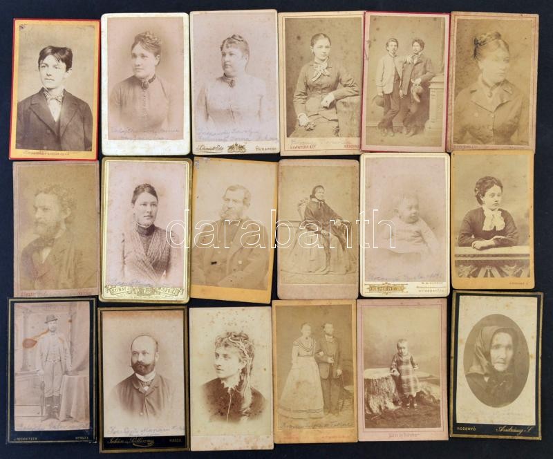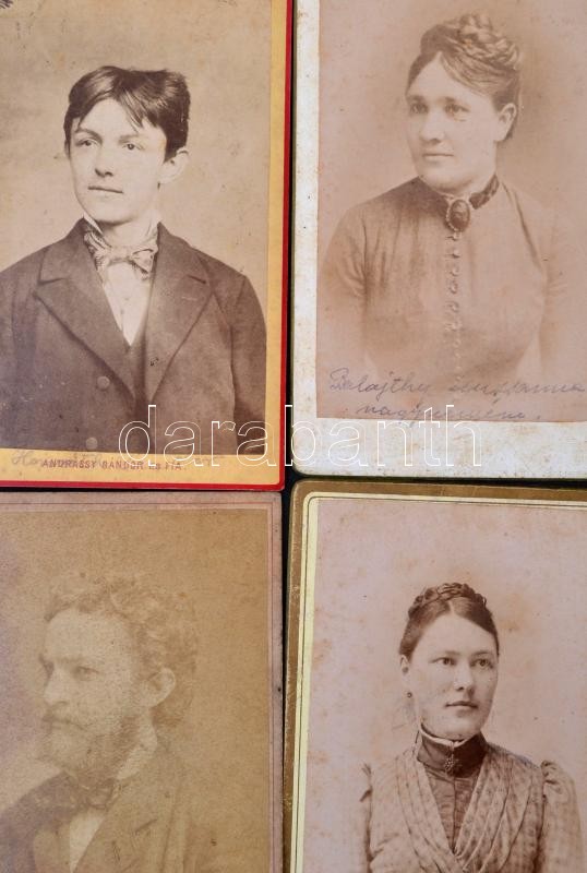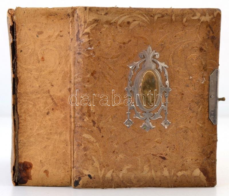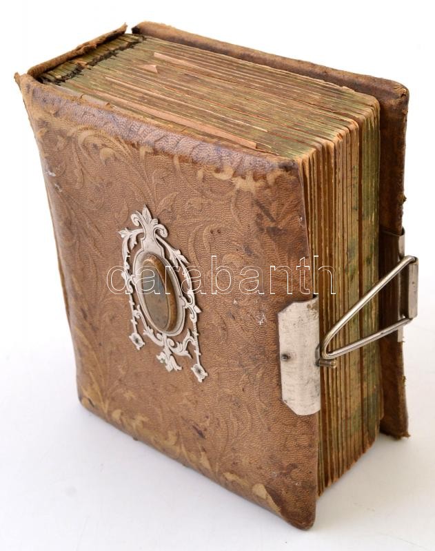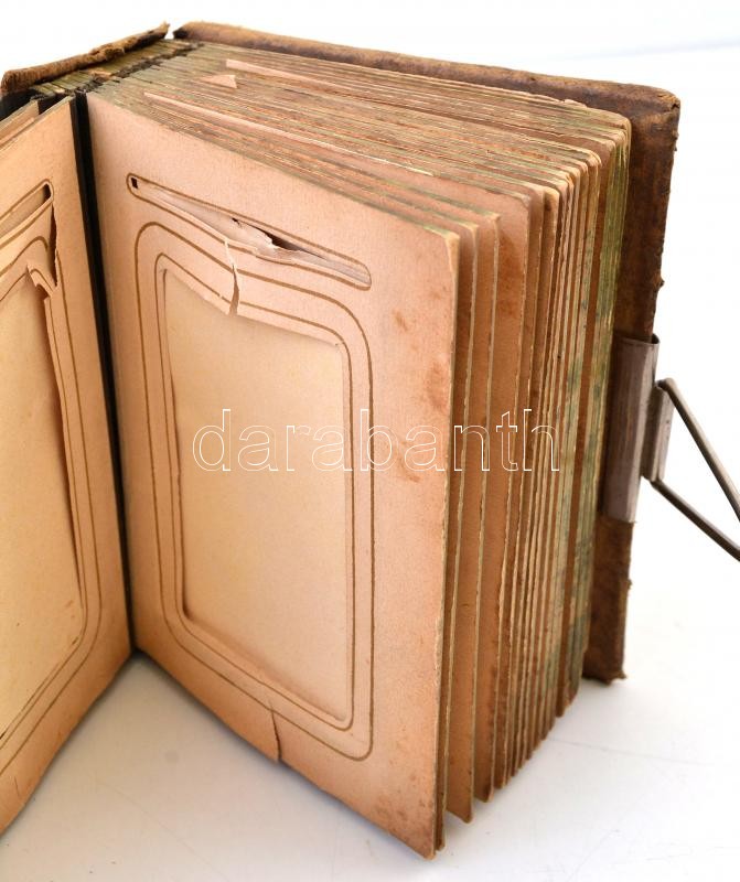 cca 1880-1890 Egy felvidéki nemesi család fotóalbuma, többségében feliratozott fotókkal, nevekkel (Krómy József járásbÃró, Gáspárdy, Hérderváry Erzsébet, stb.), 35 db, 10x6,5 cm + régi csatos fotóalbum