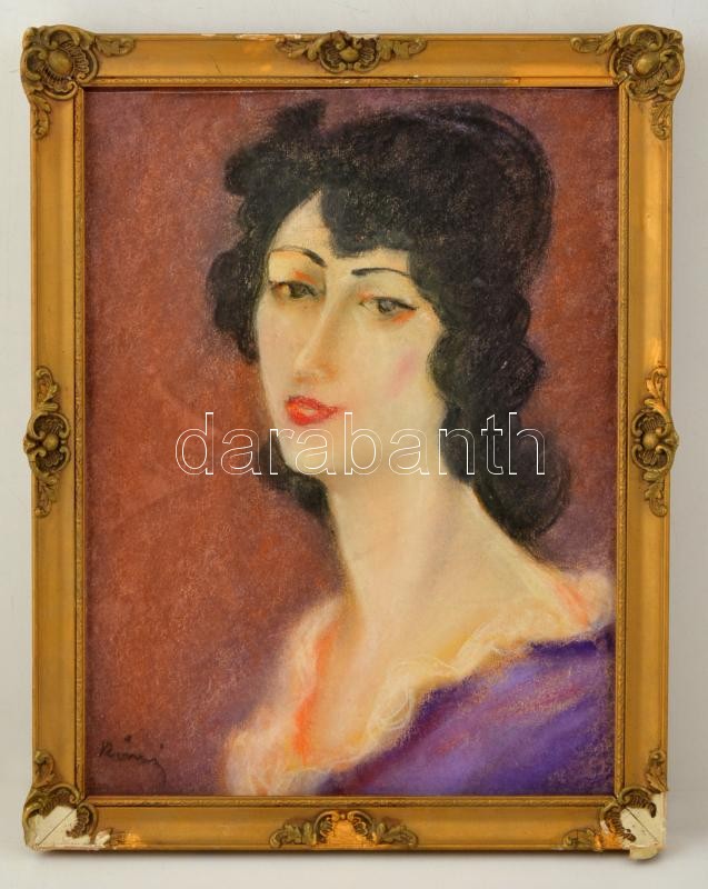 Beschreibung: Rónai jelzéssel: Női portré. Pasztell, papír, üvegezett keretben, 40×30 cm