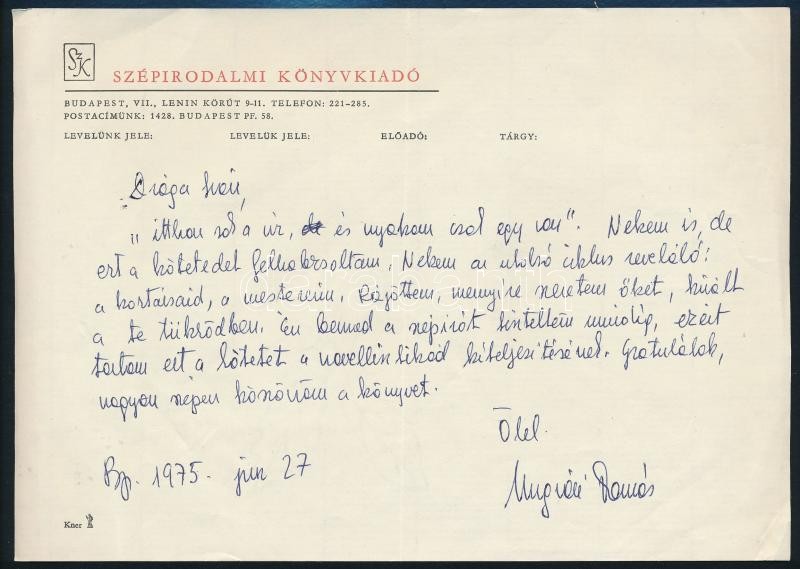 1975 Bp., Ungvári Tamás (1930-) saját kézzel írt levele https://www.darabanth.com/de/295-Fernauktion/295.0/Andere-Sammelgebiete/Historische-Dokumenten-Handschriften~200019/1975-Bp-Ungvari-Tamas-1930-sajat-kezzel-irt-levele~II1571015