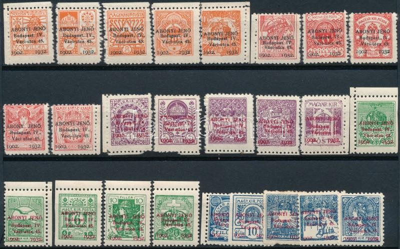 Beschreibung: 1932 Abonyi Jenő bélyegkereskedő felülnyomott levélzárók 25 db