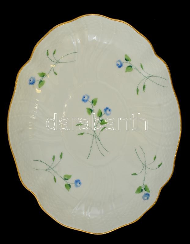 Beschreibung: Herendi virág mintás tál, kézzel festett, jelzett (koronás), enyhén kopott aranyozás, 25×21 cm