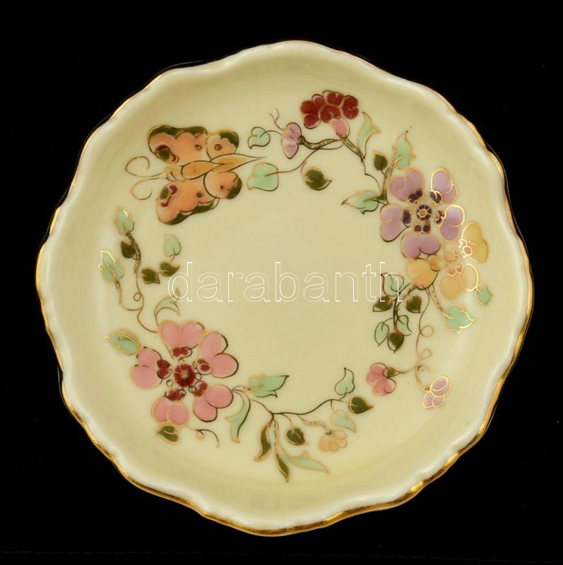 Beschreibung: Zsolnay pillangómintás porcelán hamutál, kézzel festett, jelzett, hibátlan, d: 12 cm