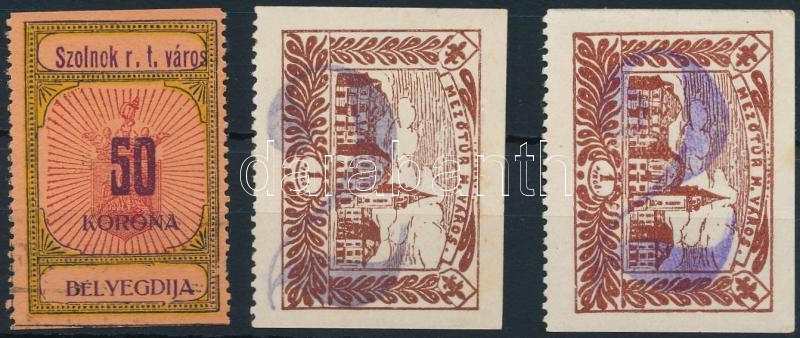 Beschreibung: 1920-1943 1 db Szolnoki 50K és 2 db Mezőtúri 2P/1P okmánybélyeg (16.500)