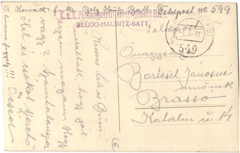 Beschreibung: 1918 K.u.K. vártüzérségi katonák csoportképe ágyúval / WWI Austro-Hungarian artillerymen with cannon, 'K.u.K. Festungsartillerieregiment Belgo-Haubitz-Batt.' group photo (EK)