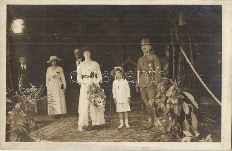 Beschreibung: 1918 Pozsony, Pressburg, Bratislava; A királyi pár üdvözlő beszéde; IV. Károly, Zita és Ottó / Charles IV, Zita and Otto. Phot. Br. Schuhmann