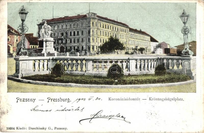 Pozsony, Pressburg, Bratislava; Krönungshügelplatz / Koronázási dombté... https://www.darabanth.com/de/295-Fernauktion/295.0/Ansichtskarten/Slowakei~7/Pozsony-Pressburg-Bratislava-Kronungshugelplatz-Koronazasi-dombter-emlekmu-Duschinsky-~II1570998