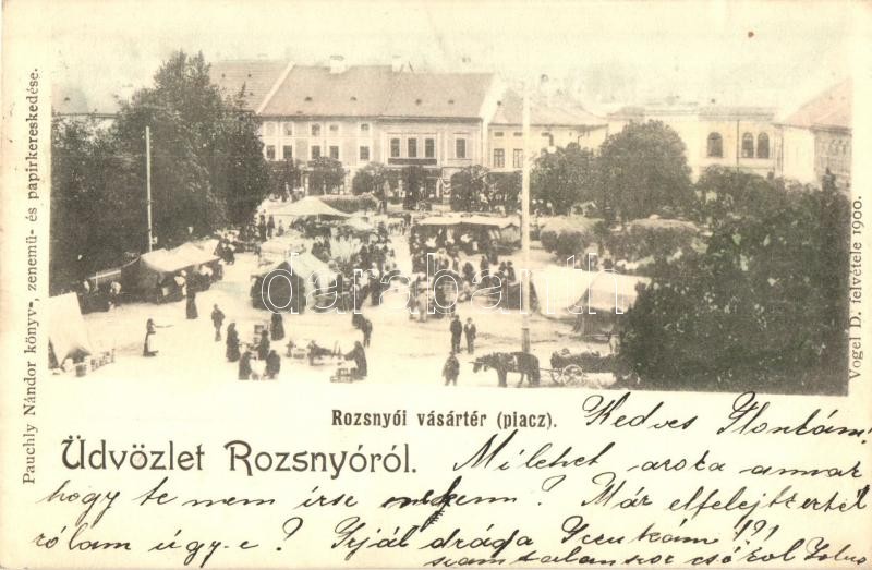 Beschreibung: Rozsnyó, Roznava; Vásártér, piac. Pauchly Nándor kiadása. Vogel D. felvétele / market square