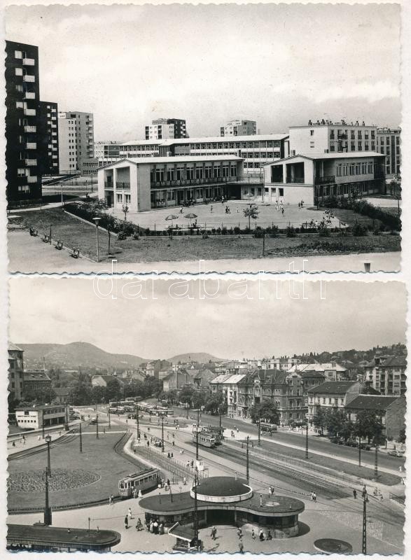 Budapest - 3 db MODERN városképes lap; BKV fogaskerekű vasút, Moszkva tér, villamosok, József Attila telep napközi otthona / 3 MODERN town-view postcards; cogwheel railway, nursery, trams