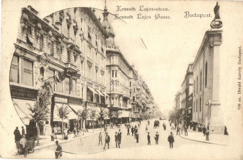 Budapest V. Kossuth Lajos utca, Szénásy Béla, Wirth J. és fia üzlete, ... https://www.darabanth.com/de/295-Fernauktion/295.0/Ansichtskarten/Ungarn~5/Budapest-V-Kossuth-Lajos-utca-Szenasy-Bela-Wirth-J-es-fia-uzlete-Gyogyszertar-a-Kigyoh~II1570790