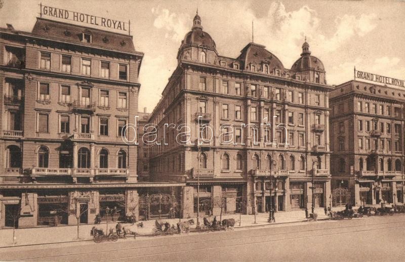 Budapest VII. Royal nagyszálloda, kávéház / Grand Hotel Royal https://www.darabanth.com/de/295-Fernauktion/295.0/Ansichtskarten/Ungarn~5/Budapest-VII-Royal-nagyszalloda-kavehaz-Grand-Hotel-Royal~II1571298