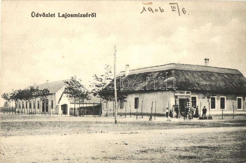 Beschreibung: Lajosmizse, utcakép, Buttinger Imre üzlete, Kohn és Grünhut kiadása (EK)