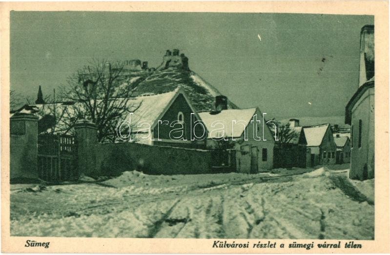 Sümeg, Külvárosi részlet télen, háttérben várrom, Horváth Gábor kiadás... https://www.darabanth.com/de/295-Fernauktion/295.0/Ansichtskarten/Ungarn~5/Sumeg-Kulvarosi-reszlet-telen-hatterben-varrom-Horvath-Gabor-kiadasa-kis-szakadas-~II1569341