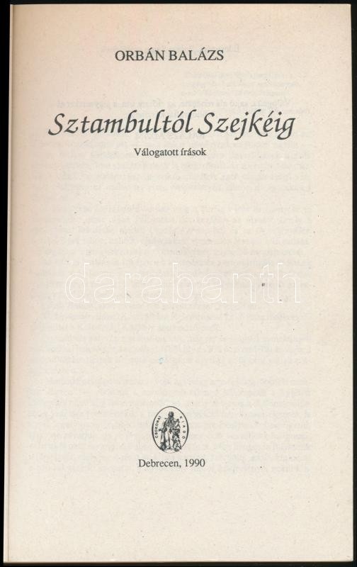 Orbán Balázs: Sztambultól Szejkéig. Debrecen, 1990, Csokonai Kiadó. Kiadói papírkötés.