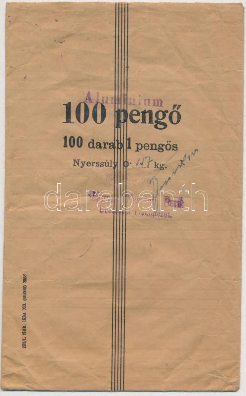 1941. Banki tasak 100db alumínium 1 Pengős érme számára https://www.darabanth.com/de/295-Fernauktion/295.0/Numismatik/Numismatische-Dokumente-und-Briefe~400003/1941-Banki-tasak-100db-aluminium-1-Pengos-erme-szamara~II1567224