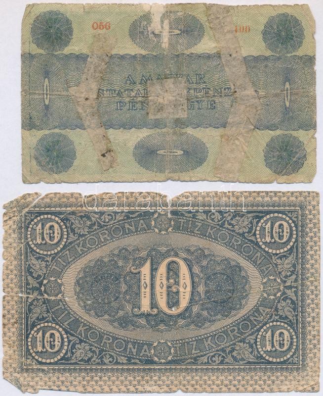 1918. 25K (2x) + 1919. 5K (2x) "MÁS TÖRVÉNYES..." + 1919. 10... https://www.darabanth.com/de/295-Fernauktion/295.0/Numismatik/Ungarische-Banknoten~400007/1918-25K-2x-plus-1919-5K-2x-MAS-TORVENYES-plus-1919-10K-TIII-IV~II1567019