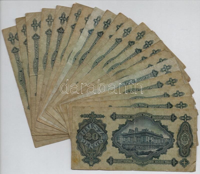 1930. 20P (64x) T:III,III- https://www.darabanth.com/de/295-Fernauktion/295.0/Numismatik/Ungarische-Banknoten~400007/1930-20P-64x-TIII-III-~II1567495