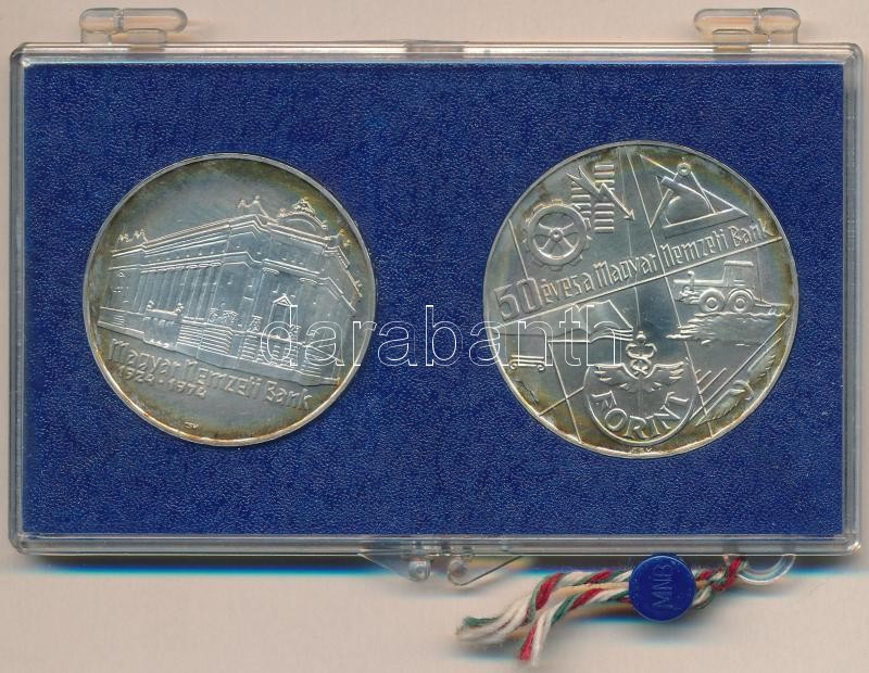 Beschreibung: 1974. 50Ft Ag + 100Ft Ag "MNB" pár, eredeti, plombált MNB plasztiktokban T:BU patina Adamo EM44, EM45