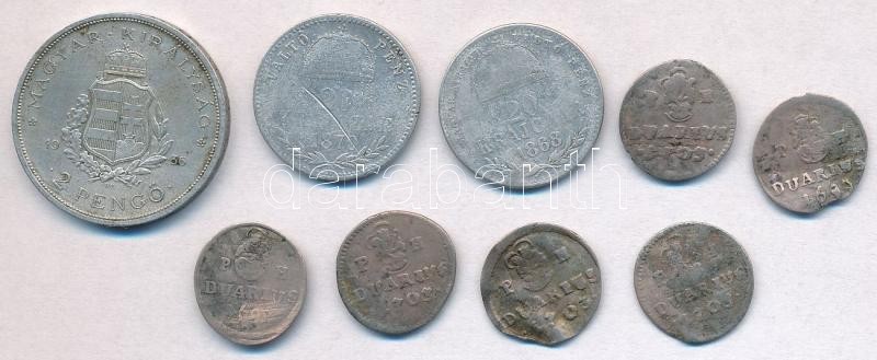 Beschreibung: 9db-os vegyes magyar ezüstpénz tétel, közte 6db Duarius; 1870GYF 20kr Ag "Váltó Pénz"; 1936. 2P Ag "Liszt Ferenc" T:2-3