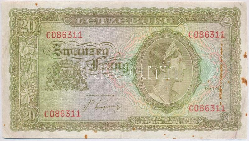 Beschreibung: Luxemburg / Szövetséges megszállás 1943. 20Fr T:III,III- kopott, fo.