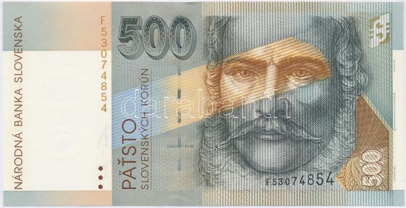 Krause 27.a https://www.darabanth.com/de/295-Fernauktion/295.0/Numismatik/Weltweit-Banknoten~400012/Szlovakia-1996-500K-TI---Slovakia-1996-500-Korun-CAU--Krause-27a~II1566506