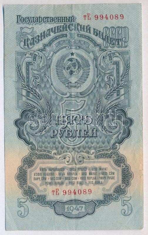 Krause 22... https://www.darabanth.com/de/295-Fernauktion/295.0/Numismatik/Weltweit-Banknoten~400012/Szovjetunio-1947-5R-TIII--Soviet-Union-1947-5-Rubles-CF--Krause-220~II1571484