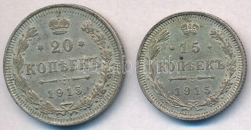 Beschreibung: Orosz Birodalom 1915. 15k Ag "II. Miklós" + 1915. 20k Ag "II. Miklós" T:2