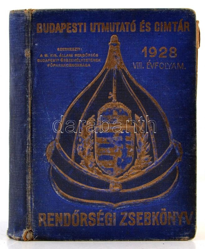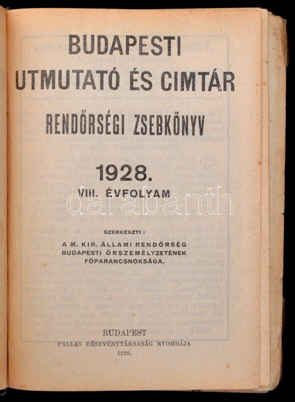 1928 Rendőrségi címtár. Budapesti utmutató és címtár. VIII. évfolyam. Bp., Pallas. Kopottas egészvászon-kötés, laza fűzéssel, a 7/8. oldal szakadt, a 8-11 oldal között a lapok kijárnak.