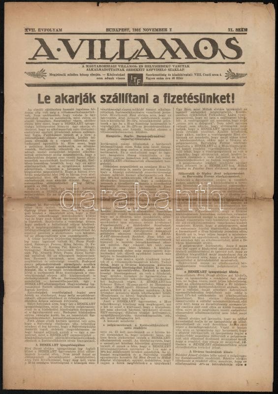 1931 A villamos 17. évf. 11. lapszáma, számos érdekes írással https://www.darabanth.com/de/296-Fernauktion/296.0/Andere-Sammelgebiete/Drucksachen~27/1931-A-villamos-17-evf-11-lapszama-szamos-erdekes-irassal~II1576364