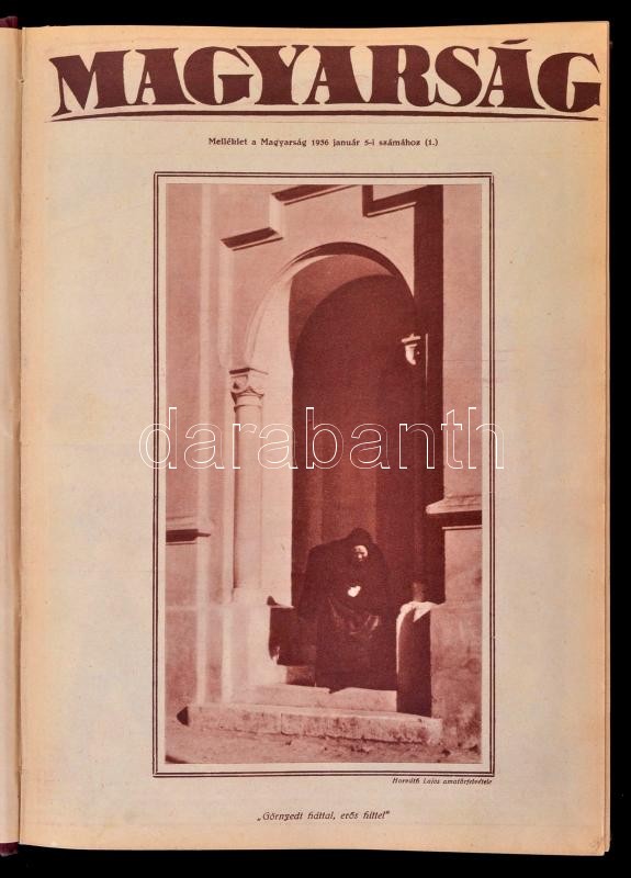 1936 Magyarság folyóirat képes mellékletei, a teljes évfolyam egybeköt... https://www.darabanth.com/de/296-Fernauktion/296.0/Andere-Sammelgebiete/Drucksachen~27/1936-Magyarsag-folyoirat-kepes-mellekletei-a-teljes-evfolyam-egybekotve-egeszvaszon-kote~II1579564