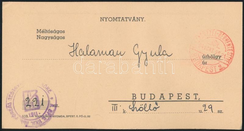 1941 Meghívó vöröskeresztes teadélutánra, bélyegzőkkel https://www.darabanth.com/de/296-Fernauktion/296.0/Andere-Sammelgebiete/Drucksachen~27/1941-Meghivo-voroskeresztes-teadelutanra-belyegzokkel~II1577089