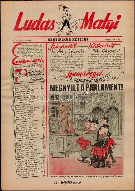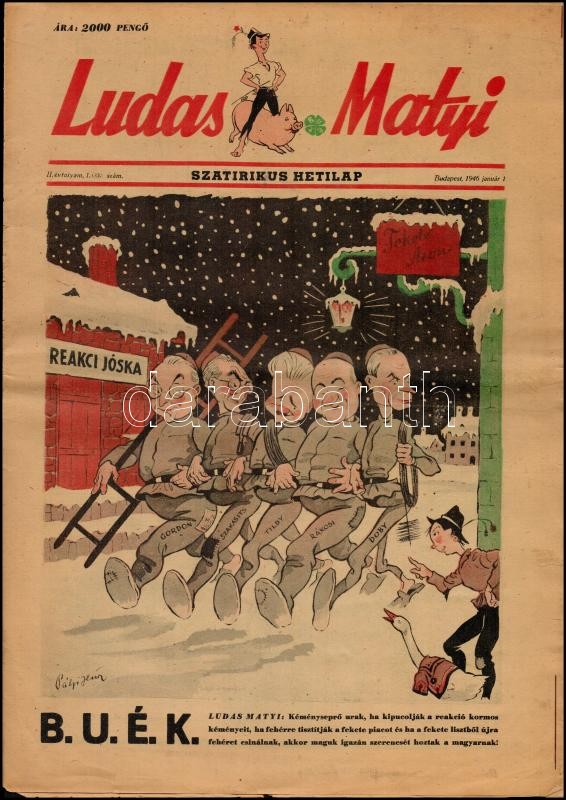 1946 A Ludas Matyi szatirikus hetilap 5 db száma, II. évf. 1-5. számok... https://www.darabanth.com/de/296-Fernauktion/296.0/Andere-Sammelgebiete/Drucksachen~27/1946-A-Ludas-Matyi-szatirikus-hetilap-5-db-szama-II-evf-1-5-szamok-33-37~II1580476