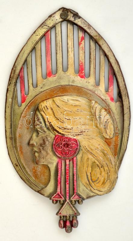Szecessziós festett fém dísz, 10x6 cm https://www.darabanth.com/de/296-Fernauktion/296.0/Andere-Sammelgebiete/Flohmarkt~11/Szecesszios-festett-fem-disz-10x6-cm~II1579767