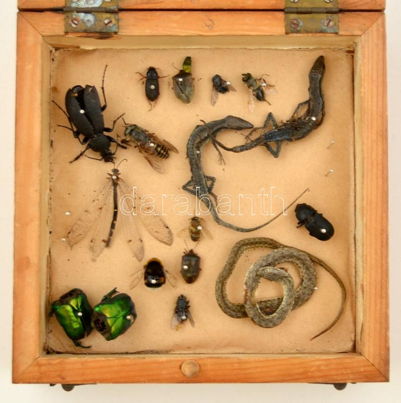 Vegyes bogár és hüllő gyűjtemény, üvegezett fa dobozban, 15x15x6 cm https://www.darabanth.com/de/296-Fernauktion/296.0/Andere-Sammelgebiete/Flohmarkt~11/Vegyes-bogar-es-hullo-gyujtemeny-uvegezett-fa-dobozban-15x15x6-cm~II1579741