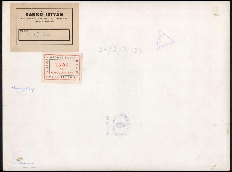 cca 1976 Darkó István (?-?) budapesti fotóművész 2 db pecséttel jelzet... https://www.darabanth.com/de/296-Fernauktion/296.0/Andere-Sammelgebiete/Foto~19/cca-1976-Darko-Istvan--budapesti-fotomuvesz-2-db-pecsettel-jelzett-vintage-fotoja-40x30~II1574383
