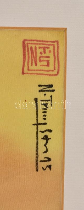 Beschreibung: Jelzett kézzel festett kínai selyem kép, üvegezett keretben, 28×38 cm