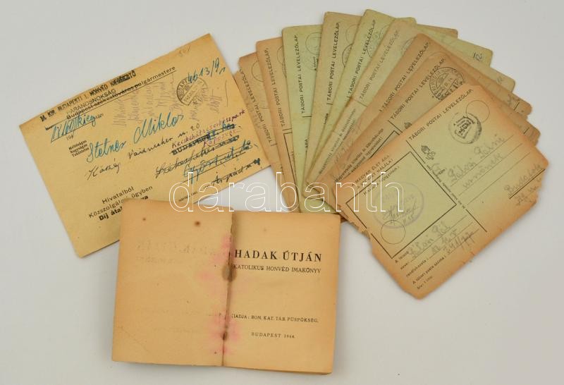 Beschreibung: cca 1942-1944 11 db tábori postai levelezőlap + Honvéd imakönyv (Bp., 1944)