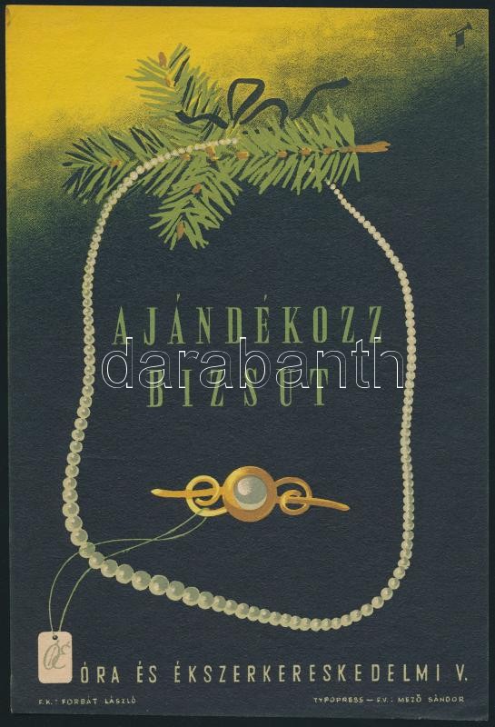 cca 1950 "Ajándékozz bizsut" Óra és ékszerkereskedelmi Vállalat, villa... https://www.darabanth.com/de/296-Fernauktion/296.0/Andere-Sammelgebiete/Poster~28/cca-1950-Ajandekozz-bizsut-Ora-es-ekszerkereskedelmi-Vallalat-villamos-plakat-23x15-5-cm~II1578018