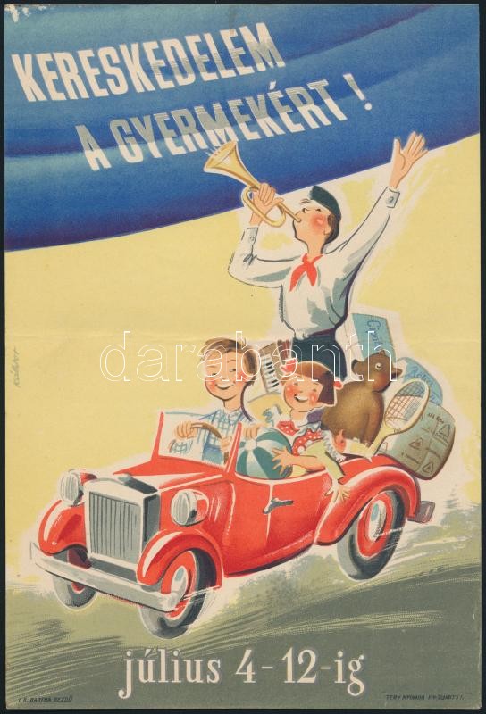 cca 1950 Káldor László (1905-1963): Kereskedelem a gyermekért! villamo... https://www.darabanth.com/de/296-Fernauktion/296.0/Andere-Sammelgebiete/Poster~28/cca-1950-Kaldor-Laszlo-1905-1963-Kereskedelem-a-gyermekert-villamos-plakat-23-5x16-cm~II1578049