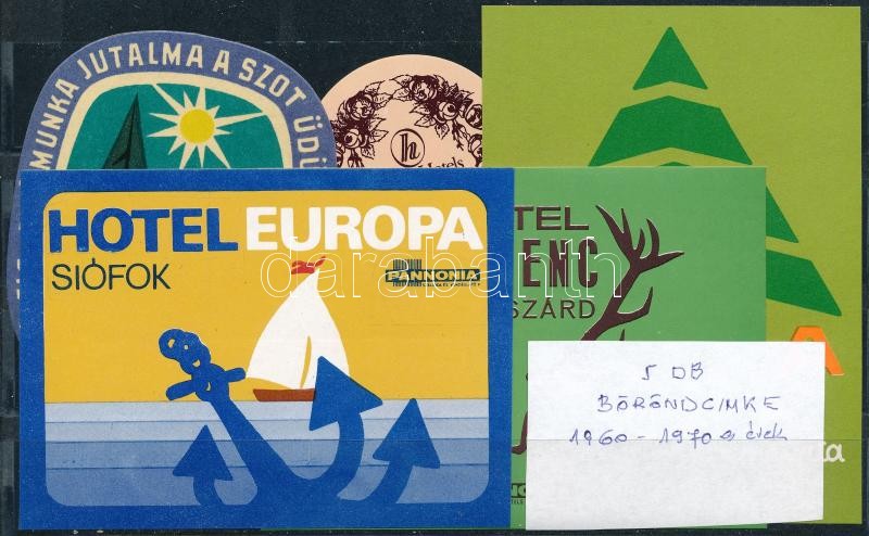 cca 1960-1970 5 db bőröndcímke: Hotel Europa (Siófok), Hotel Gemenc (S... https://www.darabanth.com/de/296-Fernauktion/296.0/Andere-Sammelgebiete/Werbungen~20/cca-1960-1970-5-db-borondcimke-Hotel-Europa-Siofok-Hotel-Gemenc-Szekszard-Diana-Hotel-T~II1580635