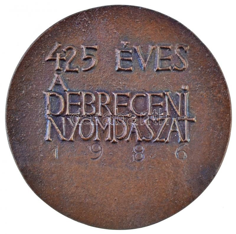 Ligeti Erika (1934-) 1986. "425 éves a debreceni nyomdászat" Br plakett (65mm) T:1-,2