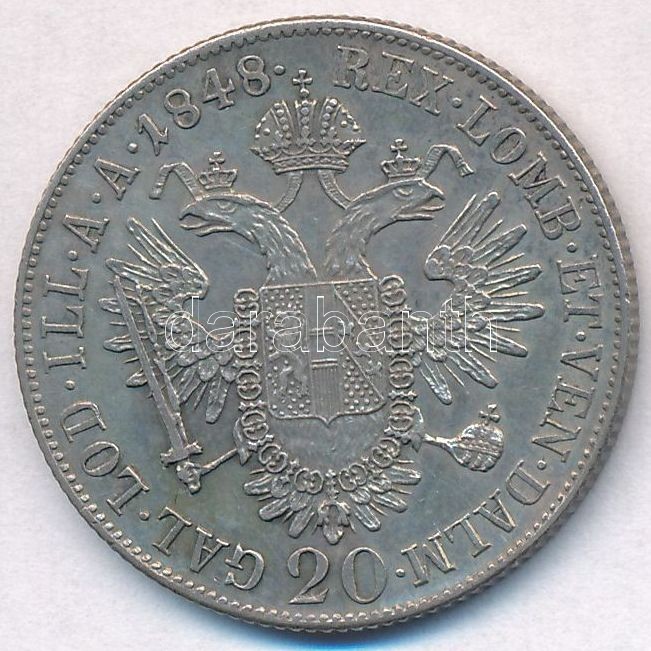 Austria 1848A 20 Kreuzer Ag &... https://www.darabanth.com/de/296-Fernauktion/296.0/Numismatik/Weltweit-Munzen~300024/Ausztria-1848A-20kr-Ag-IFerdinand-T2---Austria-1848A-20-Kreuzer-Ag-Ferdinand-I-CXF~II1579451