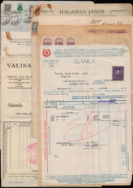 Beschreibung: 1852-1936 Vegyes okmány tétel (költségmegállapítási végzés, fejléces számla okmánybélyeggel, végrehajtás, stb.), 13 db