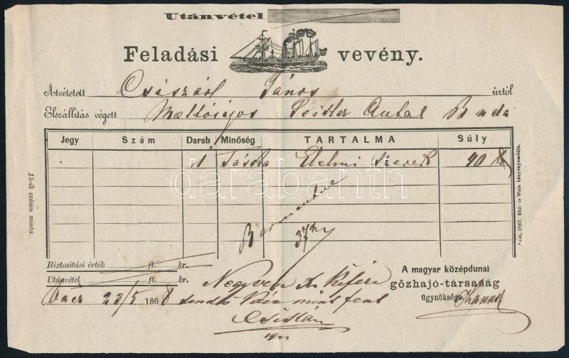 1868 A Középdunai Gőzhajótársaság fuvarlevele https://www.darabanth.com/de/297-Fernauktion/297.0/Andere-Sammelgebiete/Dokument~200019/1868-A-Kozepdunai-Gozhajotarsasag-fuvarlevele~II1582734
