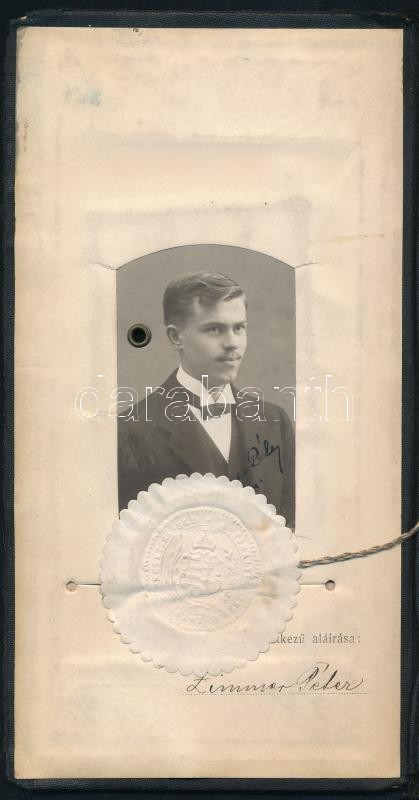 Beschreibung: 1913 a József Műegyetem fényképes leckekönyve neves oktatók aláírásaival (Bánki Donát, Heller Farkas, stb.)