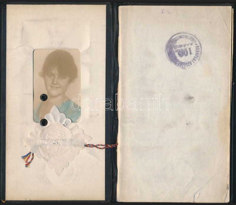1917-1920 Budapesti Tudományegyetem (Bp., Királyi Magyar Tudomány Egyetem) leckekönyve női bölcszészhallgató részére, az egyetem tanárainak (Marczali Henrik, Ballagi Aladár, Riedl Frigyes, Domanovszky Sándor, Beöthy Zsolt, Fejérpataky László ..stb), valamint rektorának (Grosschmid Béni), és dékánjainak (Goldzicher Ignác, Angyal Dávid) aláírásaival, több helyen az egyetem quastorának, Nickmann Ottónak a bejegyzésével, 1 db 2kr. 2 db 1kr. 3 db 30f. okmánybélyggel, szárazpecséttel, kopottas egészvászon-kötésben.
