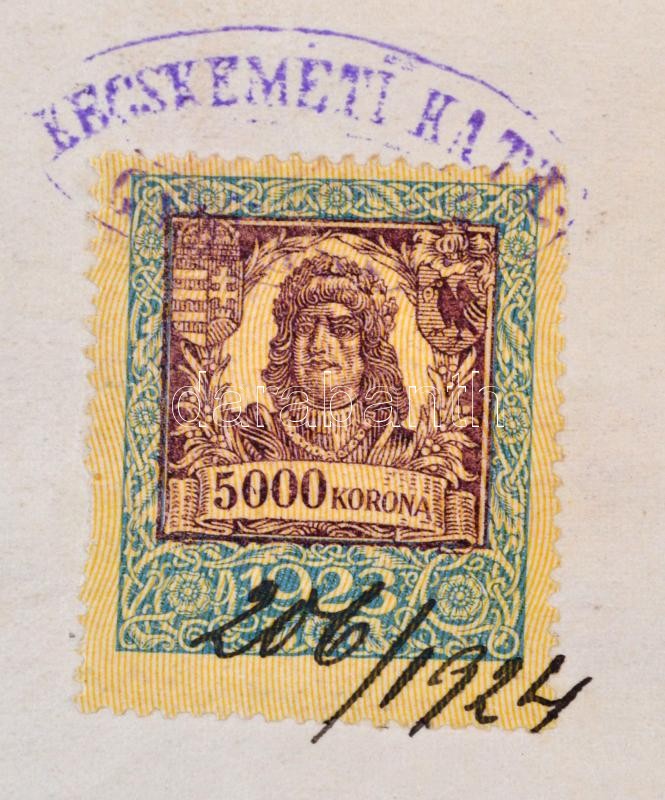 1924 Kecskemét, gimnáziumi érettségi bizonyítvány, 5000K okmánybélyegg... https://www.darabanth.com/de/297-Fernauktion/297.0/Andere-Sammelgebiete/Dokument~200019/1924-Kecskemet-gimnaziumi-erettsegi-bizonyitvany-5000K-okmanybelyeggel-hajtasnal-szakad~II1587805