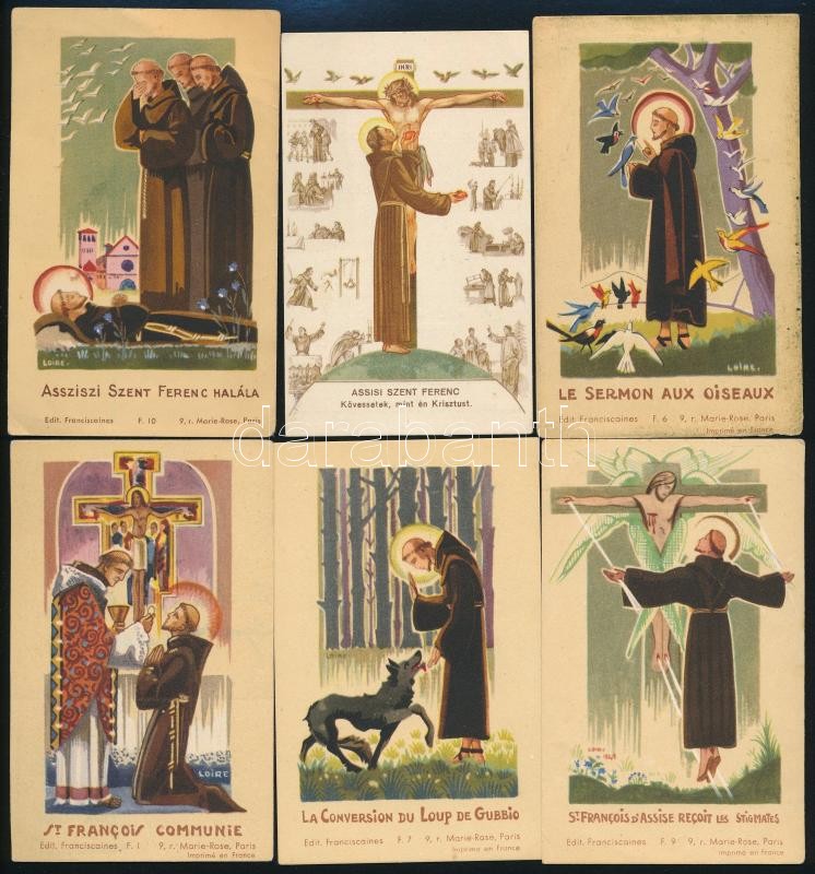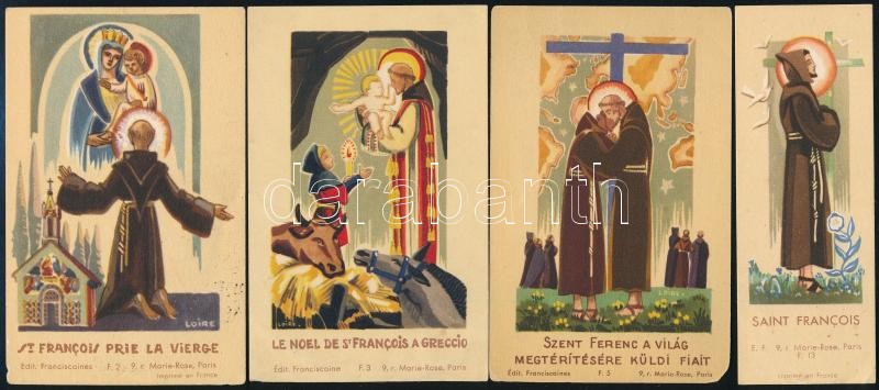 10 db régi Assisi Szent Ferenc szentkép, 11x7 cm és 11x4 cm. https://www.darabanth.com/de/297-Fernauktion/297.0/Andere-Sammelgebiete/Drucksachen~200029/10-db-regi-Assisi-Szent-Ferenc-szentkep-11x7-cm-es-11x4-cm~II1587836